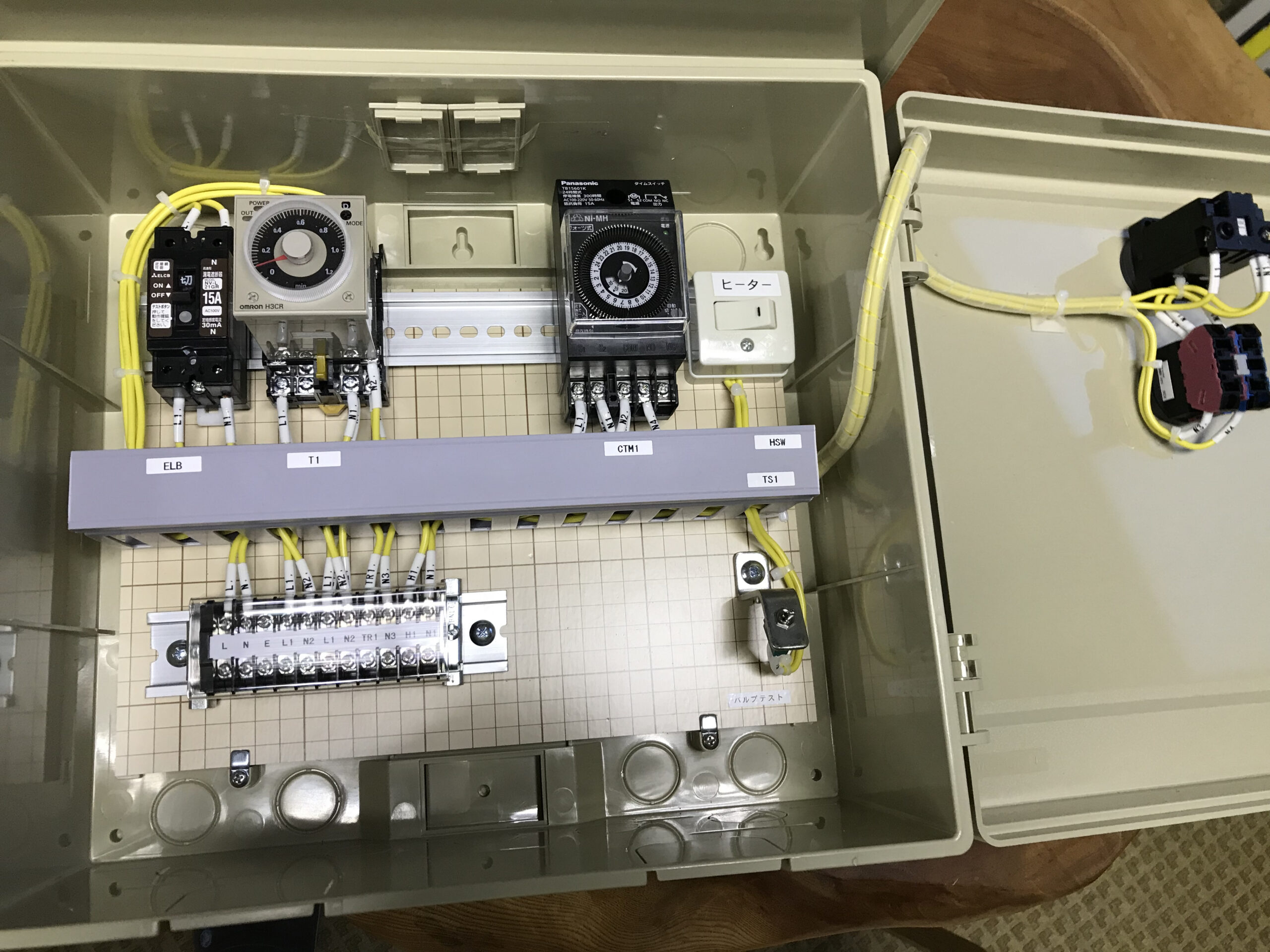 太陽光パネルの発電効率を上げるため、制御盤に24時間タイマーを組込みました。