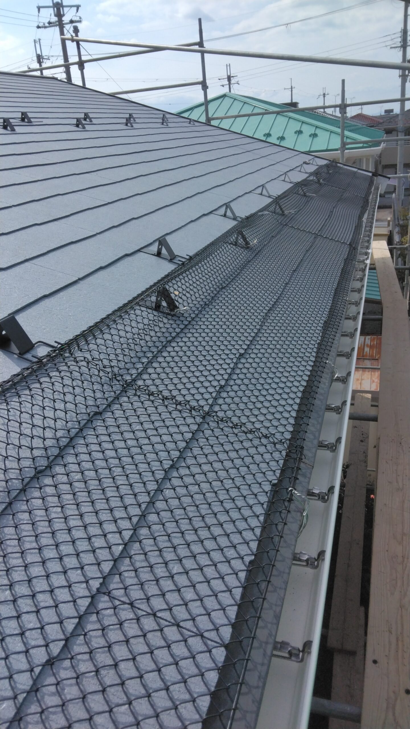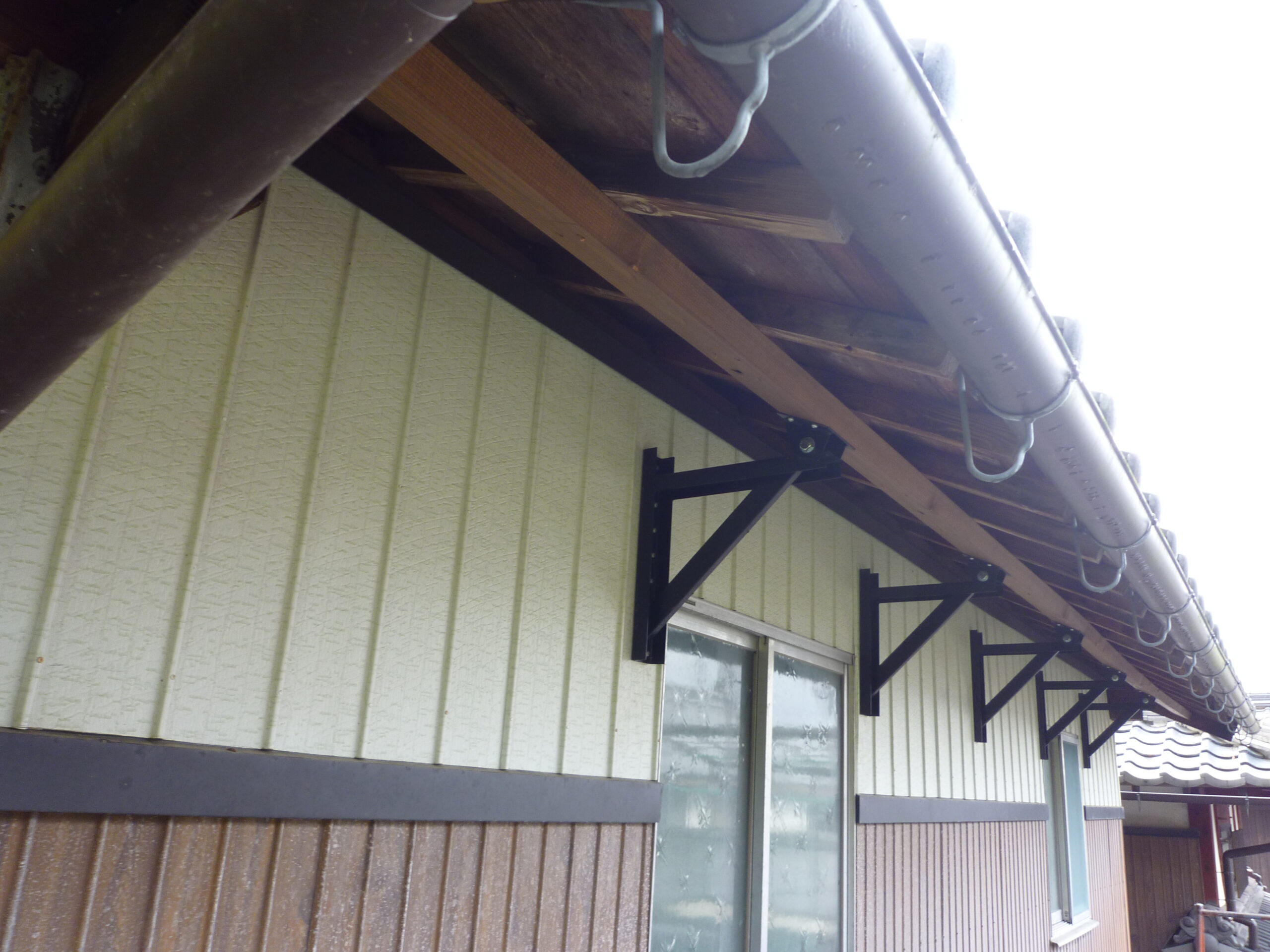 雪害対策施工事例 2025.02.232025.08.17 一般住宅軒先タルキ折れ防止金具「腕じまん」の取付の様子です 高屋根からの落雪を防止する雪止用アングルの設置の様子です 「腕じまん」の取付施工例です 落雪防止用軒先ネット施工例です