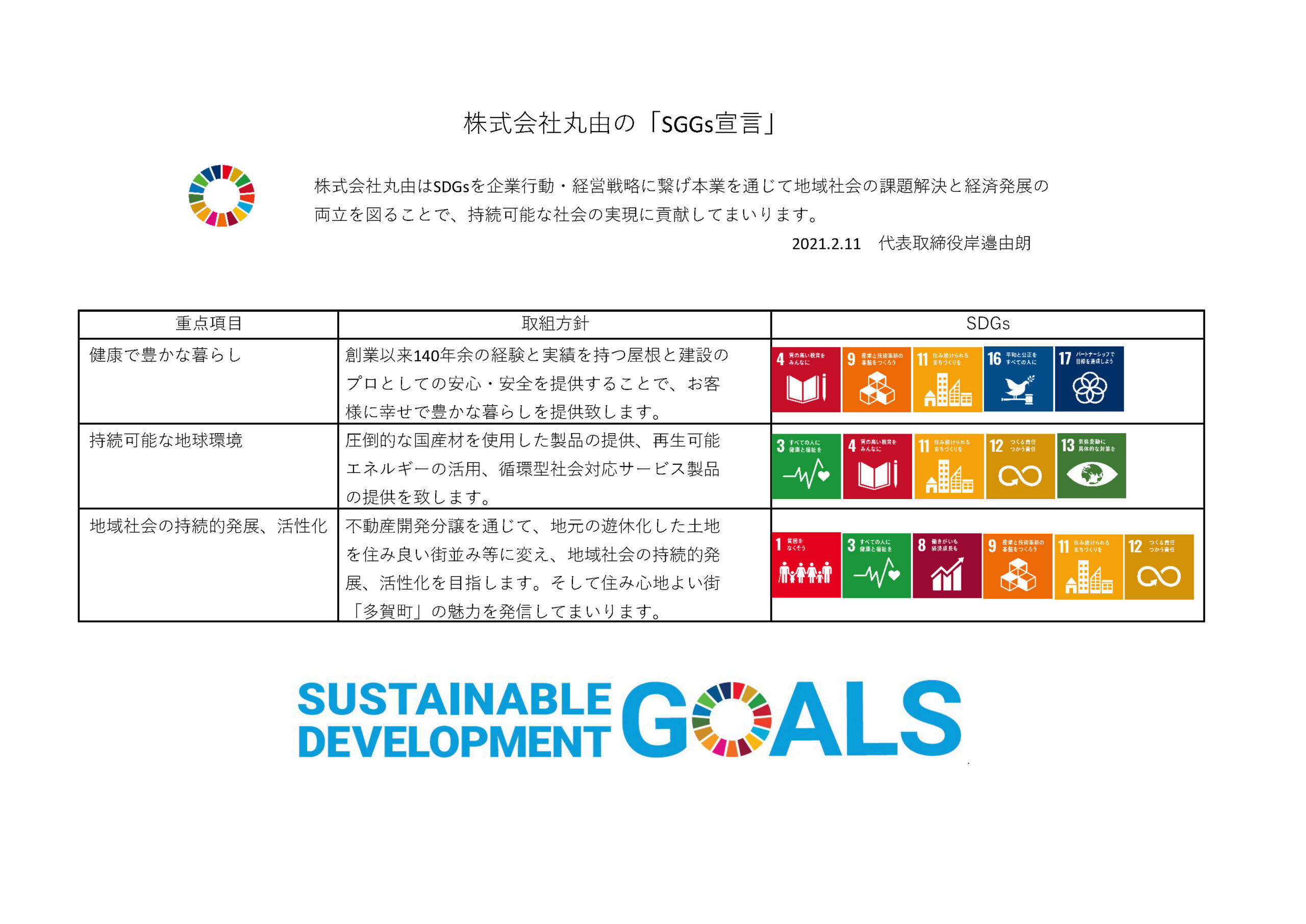 株式会社丸由は「SDGs宣言」を致しました。