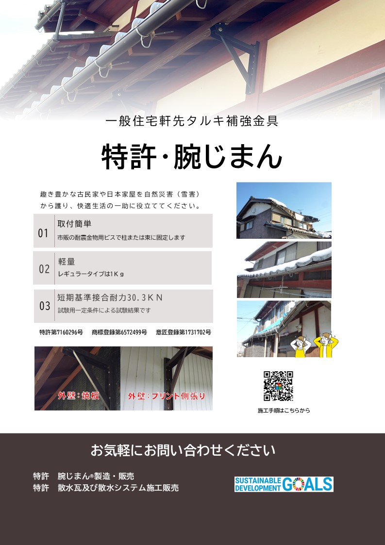 屋根の軒先が雪で壊れる前に! 簡単施工でできる雪害対策金具・腕じまん